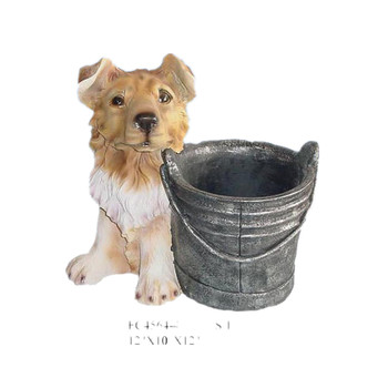 Modern European Style Hand Carved Polyresin Dog Flowerpot for Home & Garden Floor Decoration and Planting